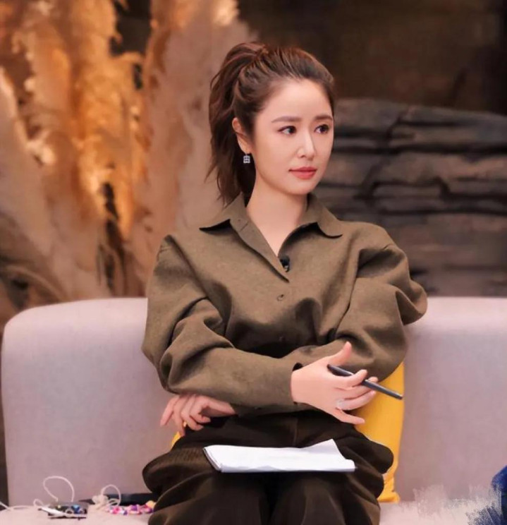 开云app官方 林心如增肥后气质更高级! 翻领衬衫棕色高腰裤高马尾, 时髦洋气!
