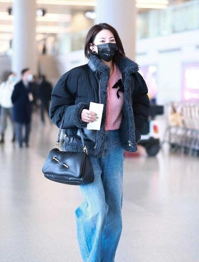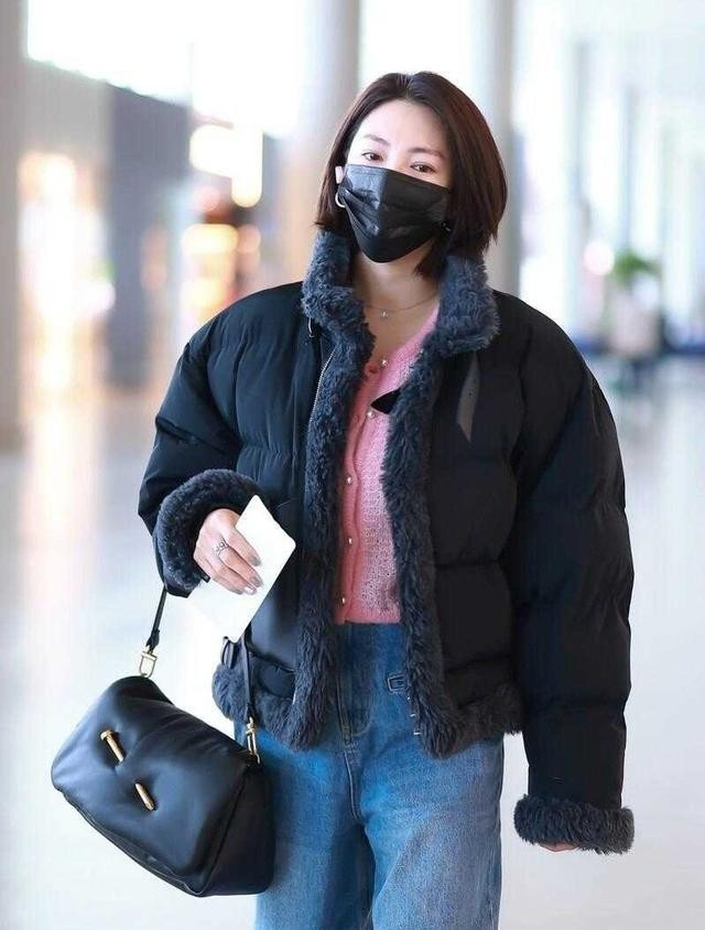 我们来看她那件黑色的短羽绒服,很普通,对吧,冬天谁都这么穿,但玄机就在敞开的衣襟里,那件粉色的开衫,像一句突兀的耳语,在黑色的沉默中炸开