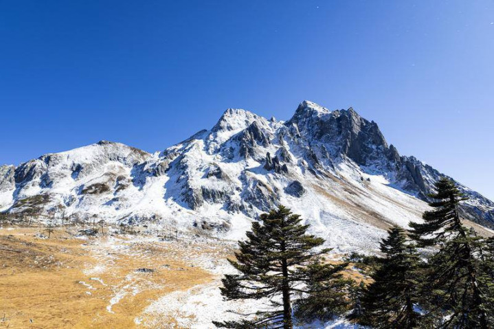 一月的孔雀山,雪落山峦,寂静生辉。胡妤雅摄