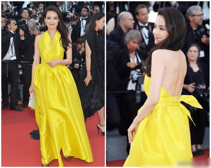 最戳我的是黄色挂脖裙的大露背——咱们普通人总被“年龄大了要保守”绑着,穿个露肩都要纠结半天,可她快50岁了,露着美背梳大波浪,笑得那么放松,好像在说“我的身体我说了算,好看就是要亮出来”!你说这哪是穿衣服啊,明明是把“自信”穿成了铠甲——比任何大牌logo都管用的铠甲!