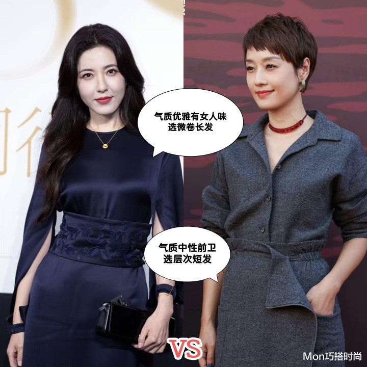 明明是和博主差不多的脸型,你剪同样的发型就很违和的话,那就要去看看“气质”了。像曾黎和马伊琍都偏长脸,但曾黎身上的曲线感更强,气质优雅,就更适合长卷发、披发等有女人味的发型。