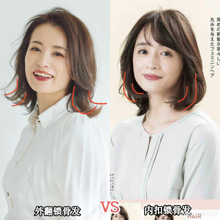 有个发型师朋友告诉我,选这种发型最好让理发师把打薄并剪出层次,一刀切太沉闷,还可以发尾卷成内扣或外翻,还可以用32mm卷发棒制造似卷非卷的大弧度波浪,超级显年轻。