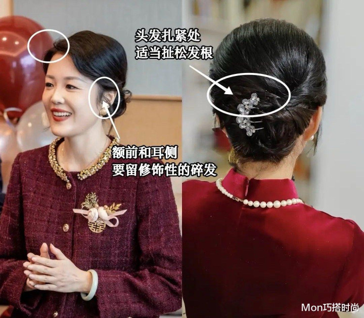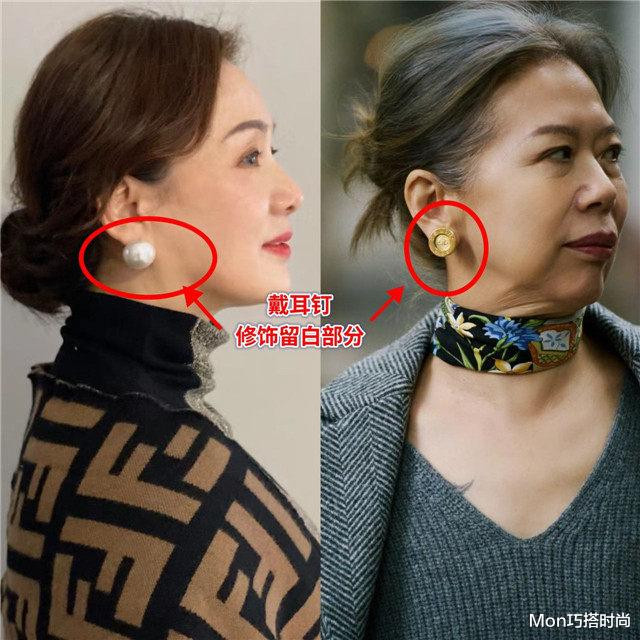 换发型后别只是关注发型,配饰也得安排上,你看这些气质阿姨们的扎发造型,总是搭配着一些精致的珠宝,瞬间提升了造型氛围感,像耳环、丝巾之类的配饰,都很适合作为点缀,能弥补耳朵以及脖子处的空旷感,显得造型更完整。