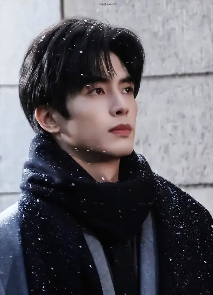 那部剧里他留着微分碎盖的发型,前面的刘海自然垂落,遮住了部分额头,整个人看起来温柔又干净。