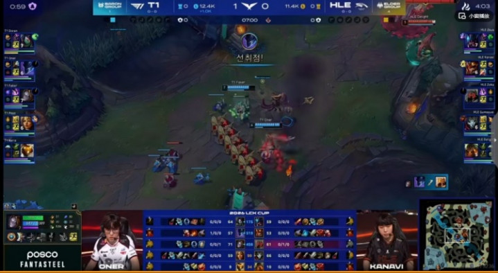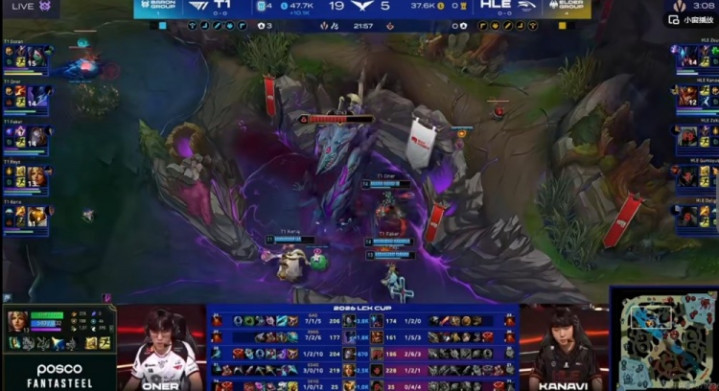 第二局:HLE上野合砍0-8Faker塞拉斯+Oner赵信勇猛无敌T1扳平比分