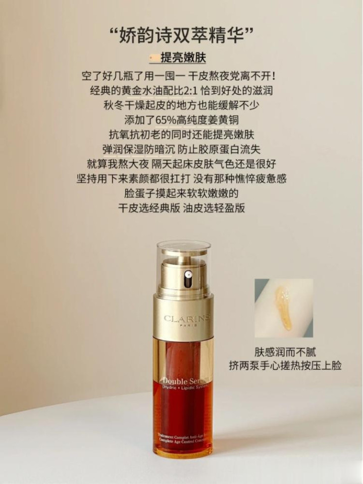 它也算是老网红了,是双管水油分离的鼻祖,主打抗氧化去黄+维稳修护,尤其是去黄效果很在线,熬大夜救星,它是双管设计可以分大小滴取用,方便根据自己的肤质或分季节控制用量。