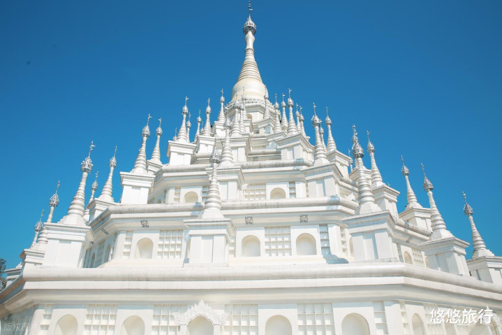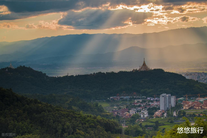 雷崖让山顶的勐焕大金塔泛着金光,勐焕银塔与之相对。中间的书店看日落和俯瞰芒市城区都是绝佳位置。