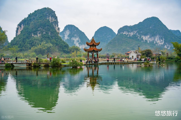 去旧州古镇做一次绣球,往田野深处走,清代文昌阁倒映水中。喀斯特山峰环绕渠洋湖湖面,坐船看是蓝色,开云app官方在线入口在山上看是宝石绿。