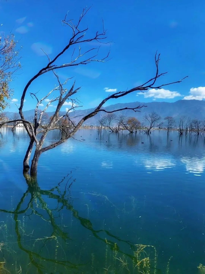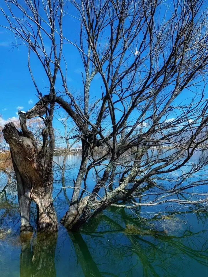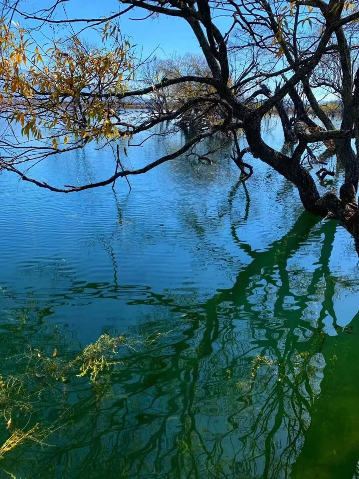 除了人文的厚重,这里的自然资源同样令人惊叹。草海里,随风舞动的芦苇花,如雪般轻盈;成群越冬的候鸟(甚至能看到鸬鹚的身影)在此栖息,生机勃勃。深蓝色的湖面,波光粼粼,每一处都散发着迷人的野性气息。
