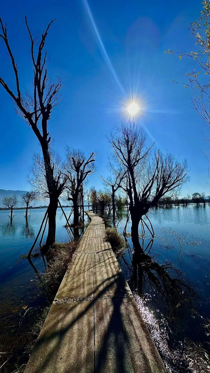 漫步其上,清风拂面,水波不兴,你仿佛不是在行走,而是轻轻踏进了一个与世隔绝的梦幻桃源。